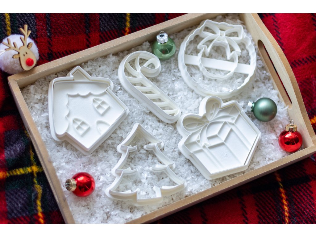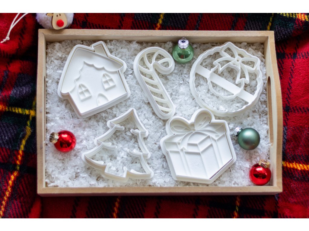 Výhodný set obsahujicí pět vykrajovátek (domeček, candy hůlka, stromeček, dáreček, věnec).